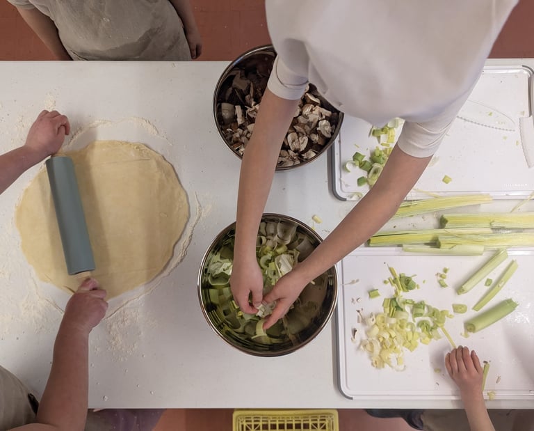 Afin que chaque enfant puisse effectuer toutes les étapes de la recette avec un accompagnement approprié, les places sont limitées à 8 enfants par groupe, avec un maximum de 4 élèves de Maternelle ou 1re année.